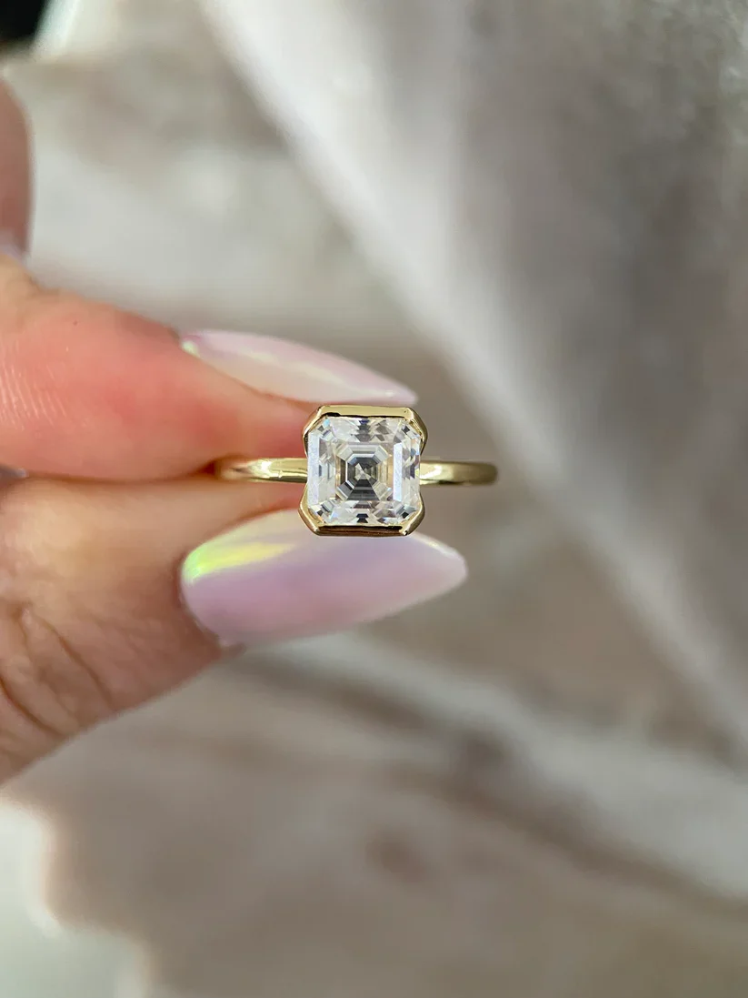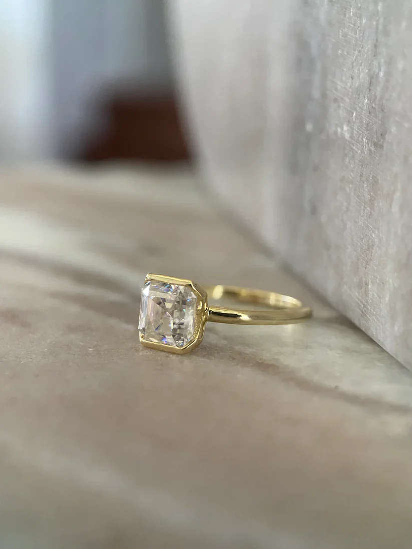 Asscher Edition Moissanite Diamond 925 Silver IGI Certified Fine Ring 'Meet Me Halfway' Wedding Engagement Romantic
